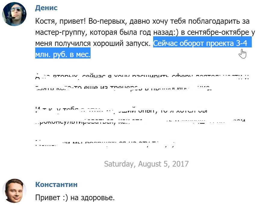 Результат: 140 человек на тренинг со средним чеком в 16 тысяч рублей (это 2 миллиона 240 тысяч рублей)