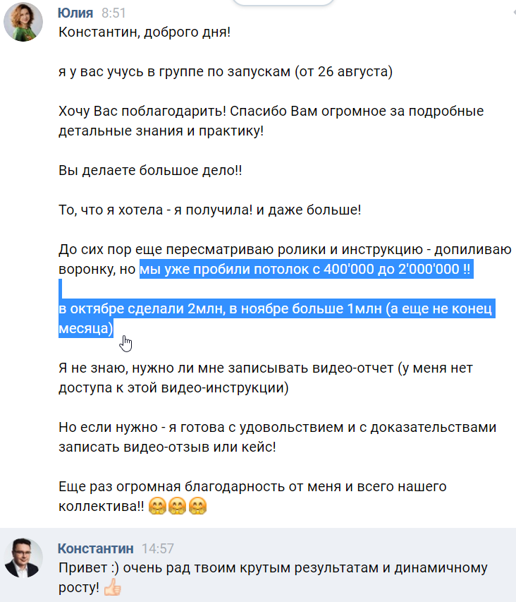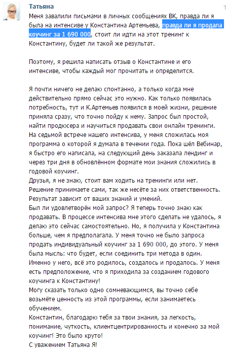 Результат: Продажа ультрадорогого личного коучинга за 1 миллион 690 тысяч рублей! Это, кстати, рекорд в нашем коучинге за 1 продажу!