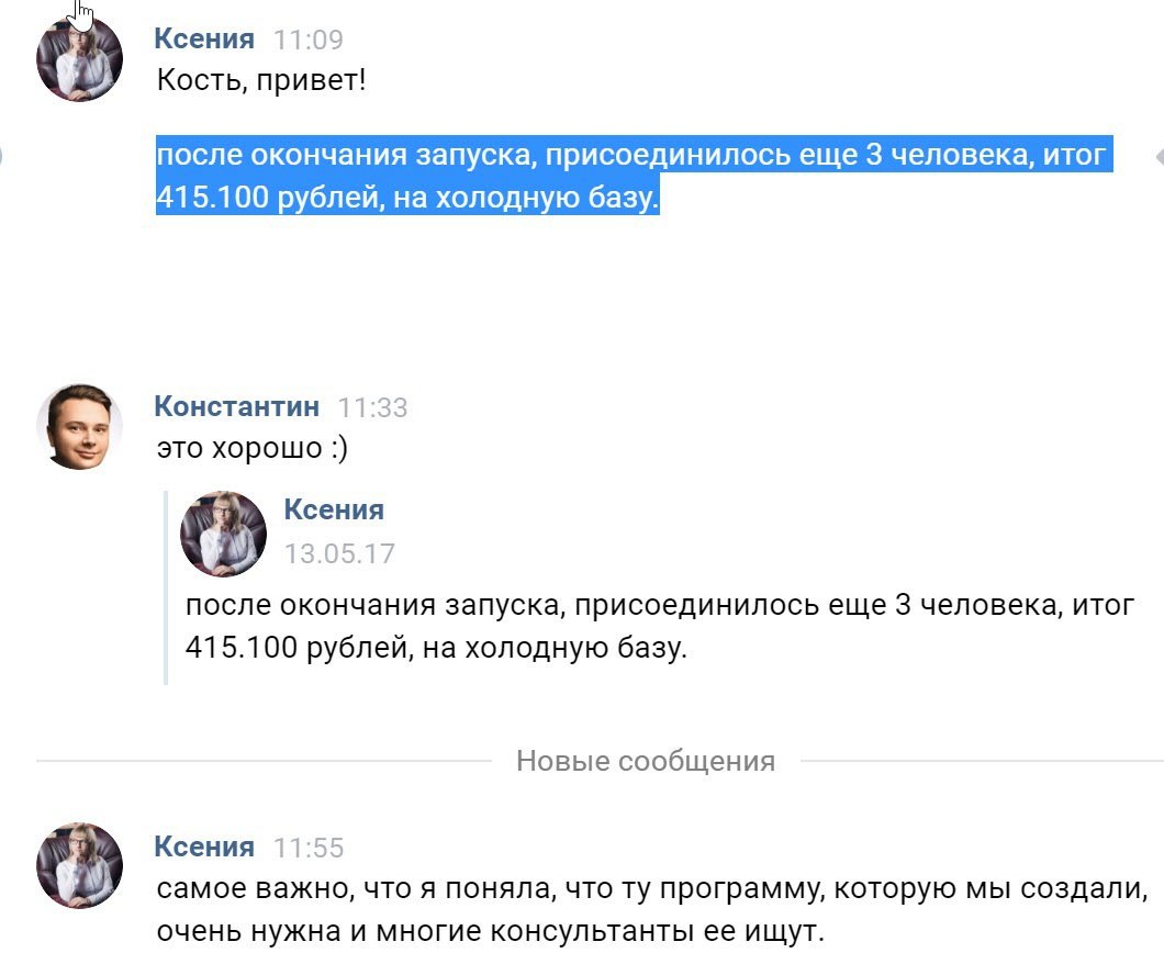 Результат: 300 человек на 2 тренинга за 2 недели, чистая прибыль = 230 000 рублей