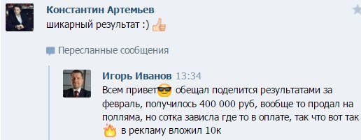 Результат = 600 тысяч рублей при рекламном бюджете 25 000 рублей (1 месяц), а затем в одном из следующих запусков